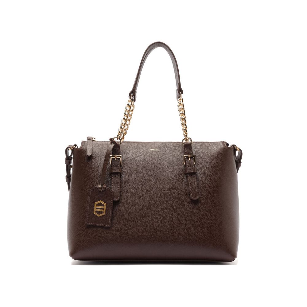 Bolsa Arezzo Tote Marrom Cacau Couro Grande Alça Corrente