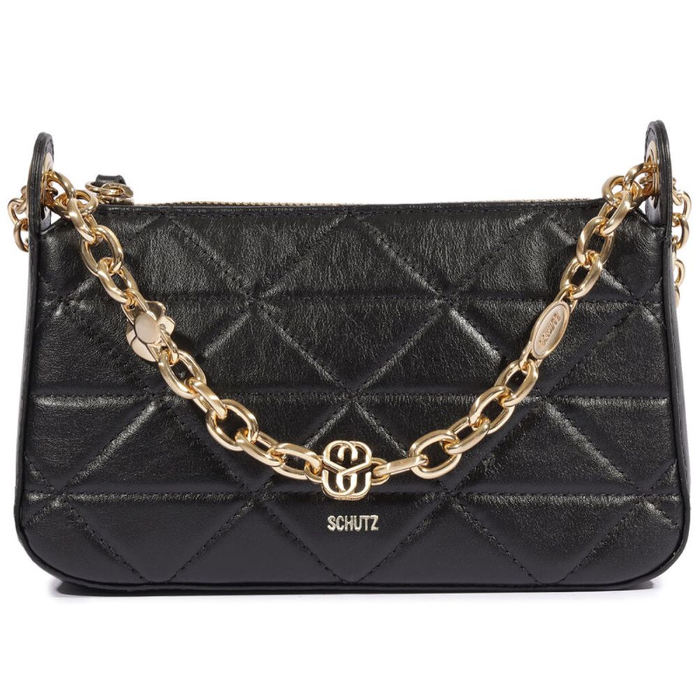 Bolsa Schutz Tiracolo Preta Matelassê Corrente Dourada Pequena