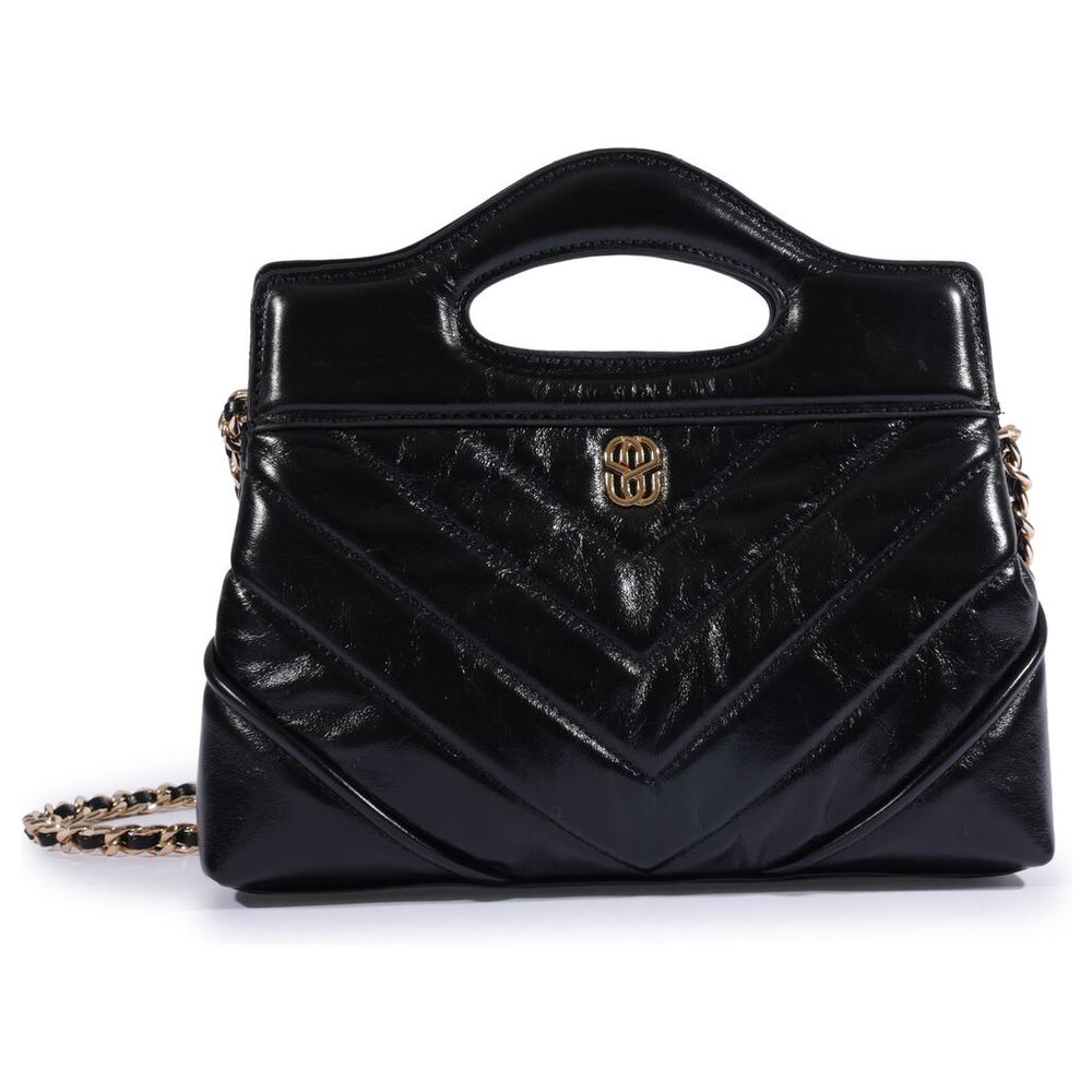 Bolsa Schutz Tiracolo Preta Matelassê Pequena Alça de Mão Corrente Dourada SHINE CRINK - BLACK(METAI - UN