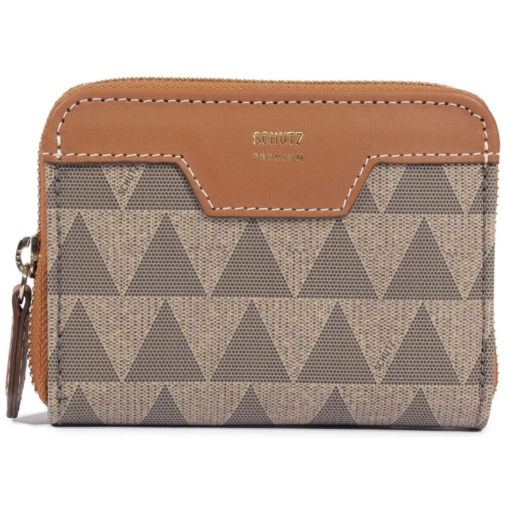 Carteira Schutz Canvas Triangle Bege/Marrom Pequena