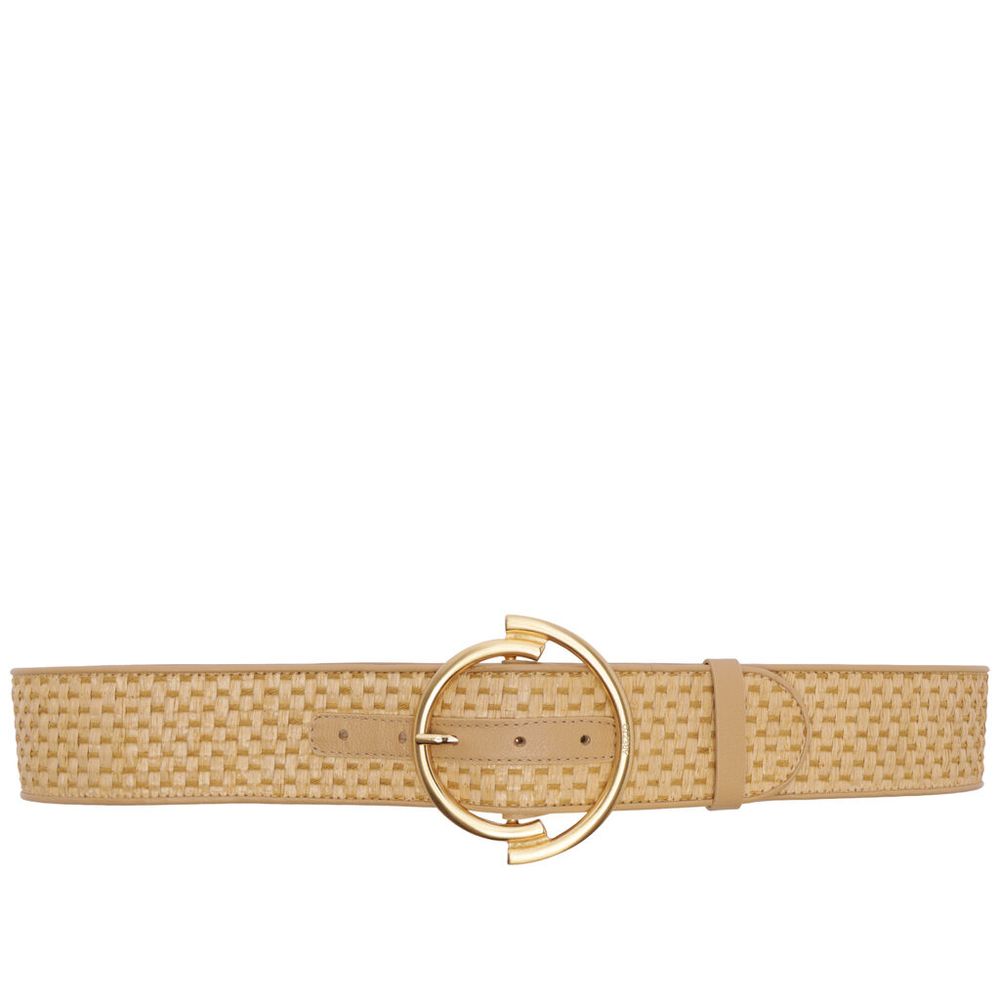 Cinto Arezzo Couro Palha Tramado Largo Fivela Dourada