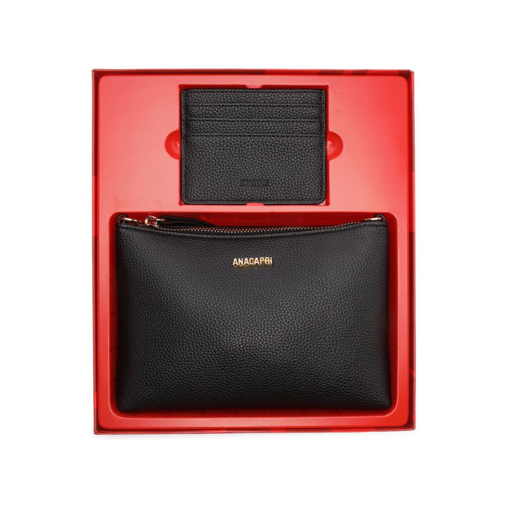 Kit Anacapri de Bolsa Tiracolo Média e Porta Cartão Preta