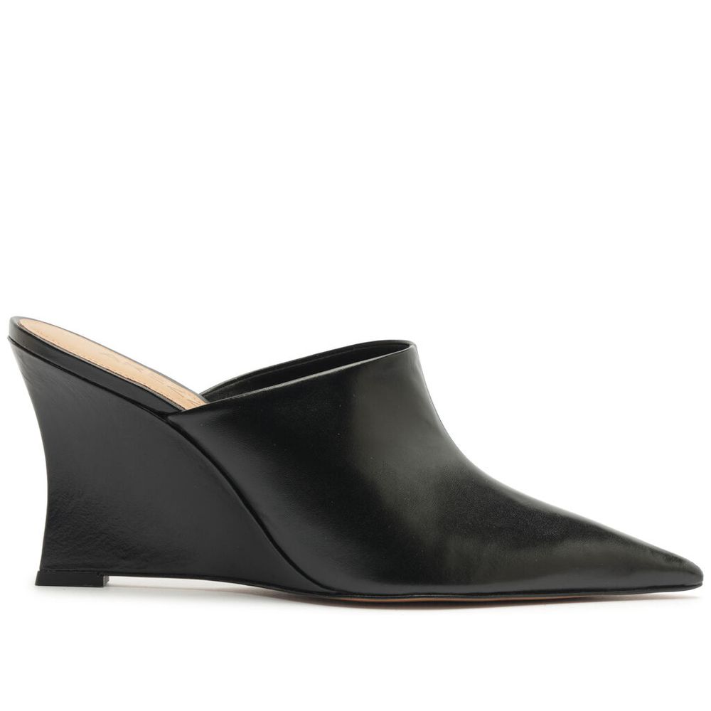 Mule Arezzo Preta Couro Salto Alto Anabela