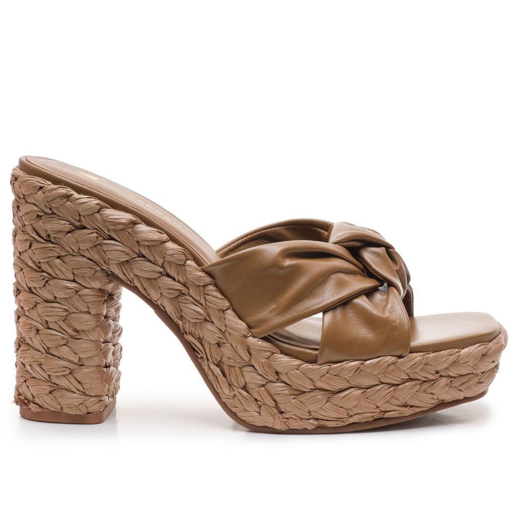 Open Mule Carrano Plataforma Natural Twist Couro Marrom Honey