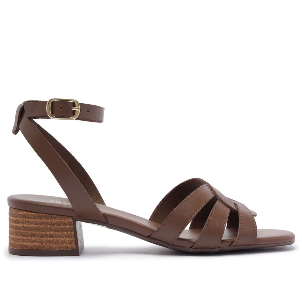 Sandália Anacapri Marrom Salto Baixo Tiras Cruzadas