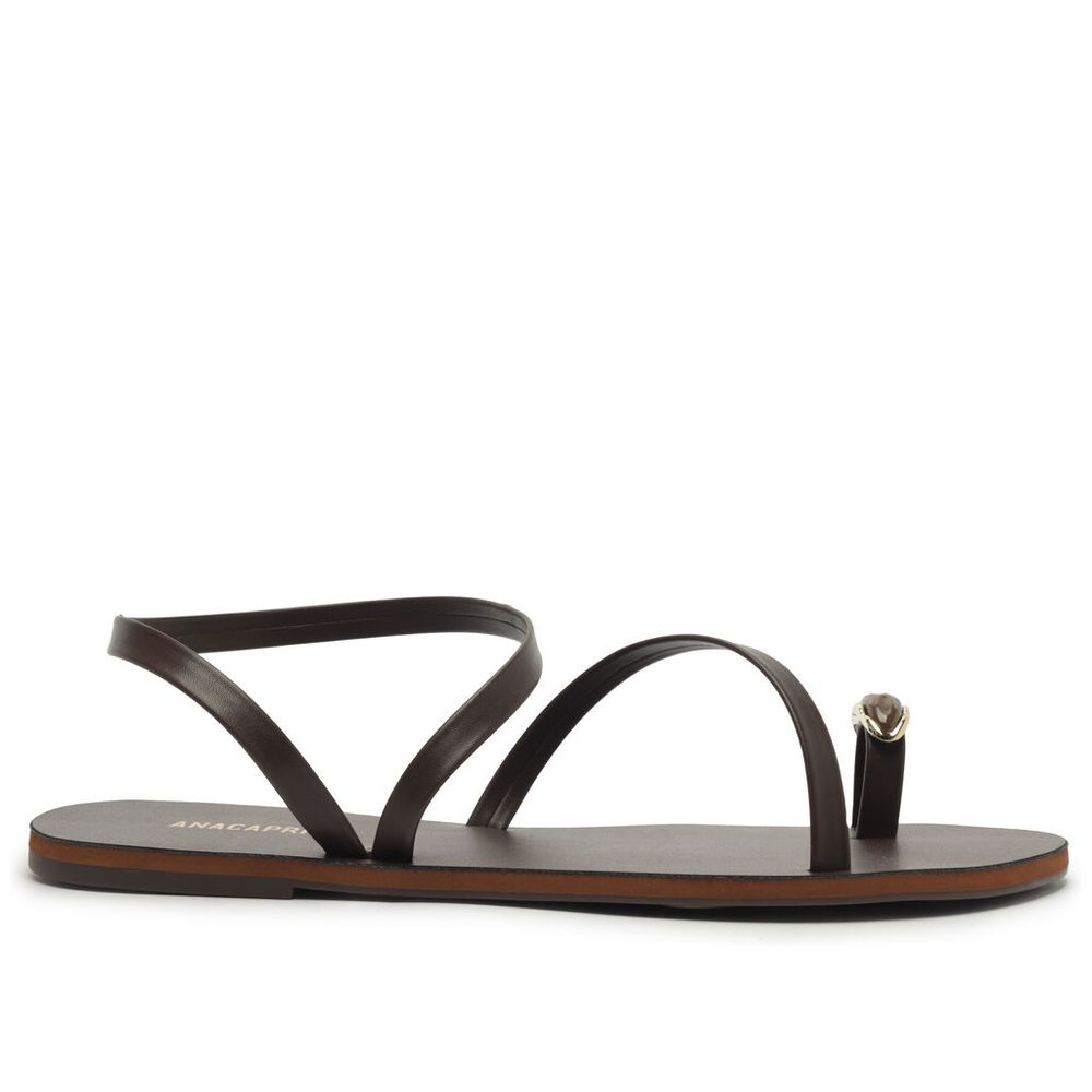 Sandália Anacapri Rasteira Anel de Dedo Pedraria Marrom