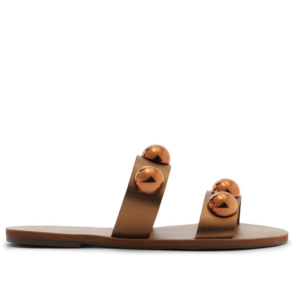 Sandalia Anacapri Rasteira Tiras Paralelas Esfera Pop Couro Bronze