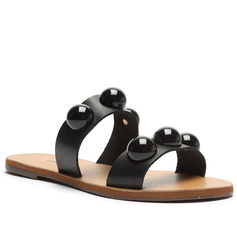 Sandalia Anacapri Rasteira Tiras Paralelas Esfera Pop Couro Preta