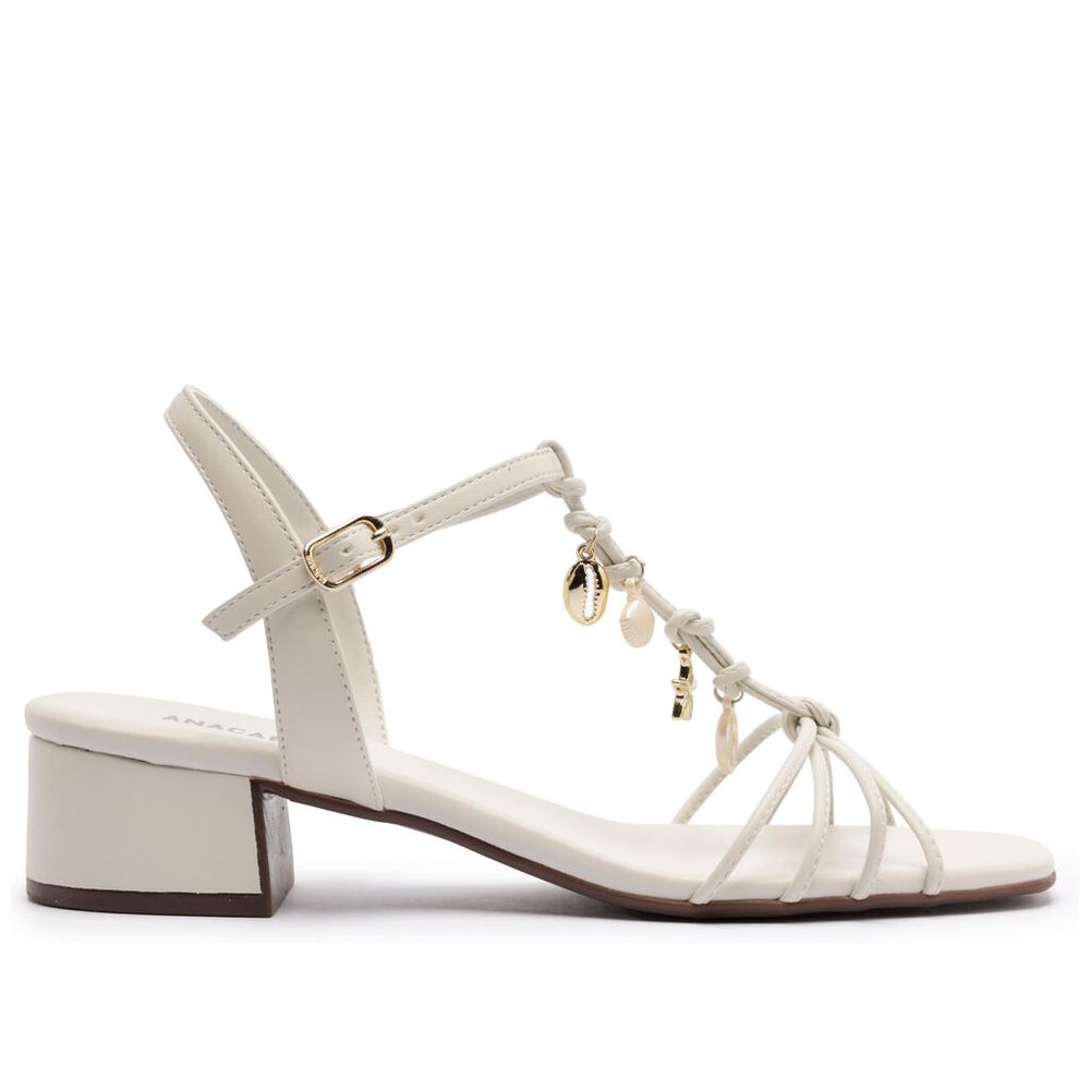 Sandália Anacapri Salto Bloco Sunset Branca Adornos
