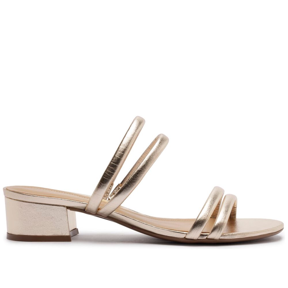 Sandália Arezzo Dourada Salto Bloco Baixo Tiras Finas