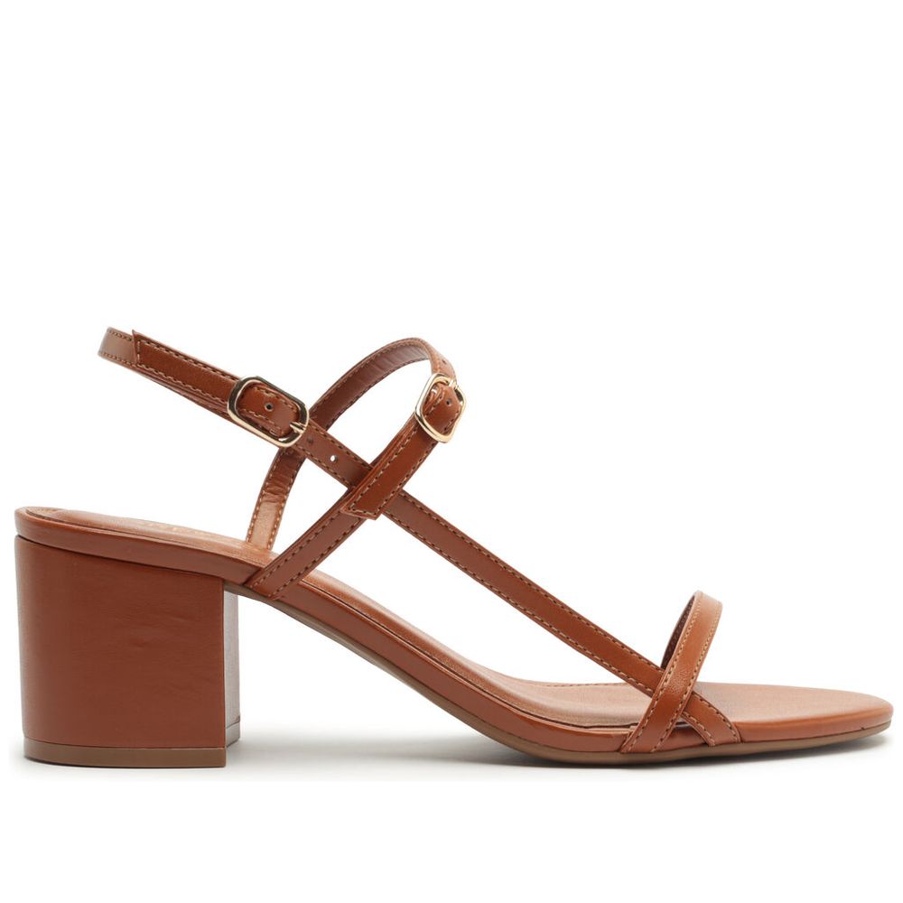 Sandália Arezzo Marrom Tiras Finas Salto Bloco Médio