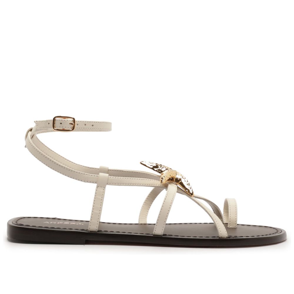 Sandália Arezzo Rasteira Branca Couro Dedeira Metal Estrela