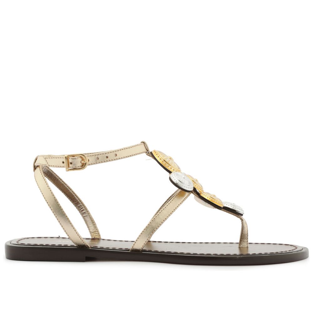Sandália Arezzo Rasteira Dourada Couro Aplicações Metálicas Prata e Ouro