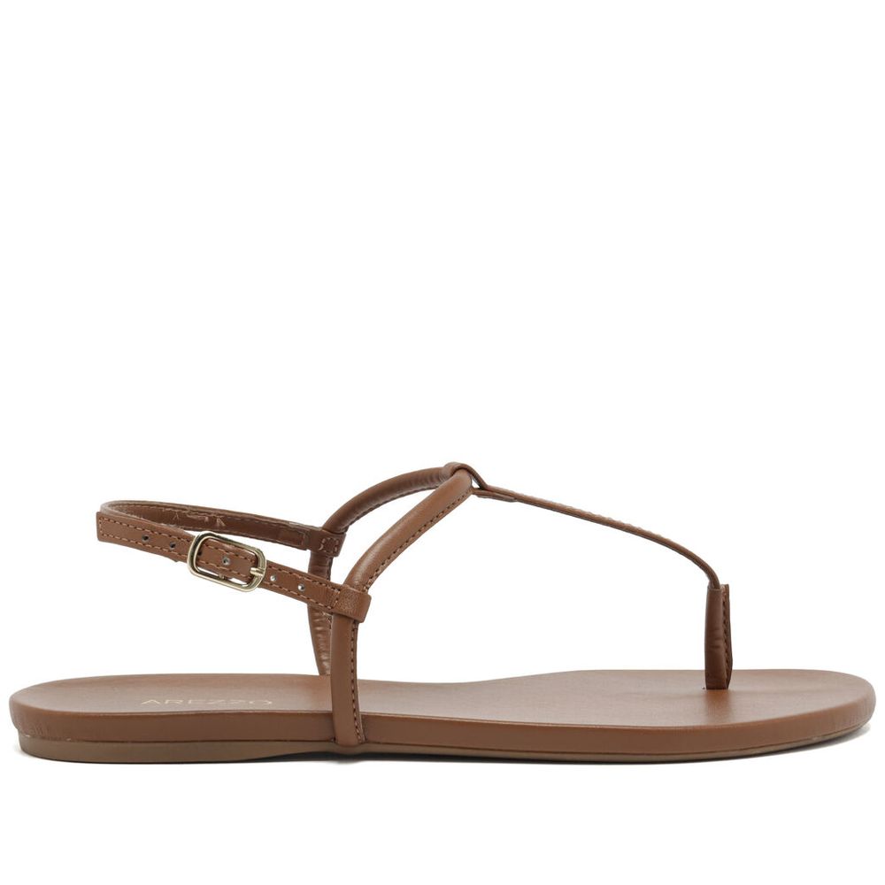 Sandália Arezzo Rasteira Marrom Tiras Slim Básica