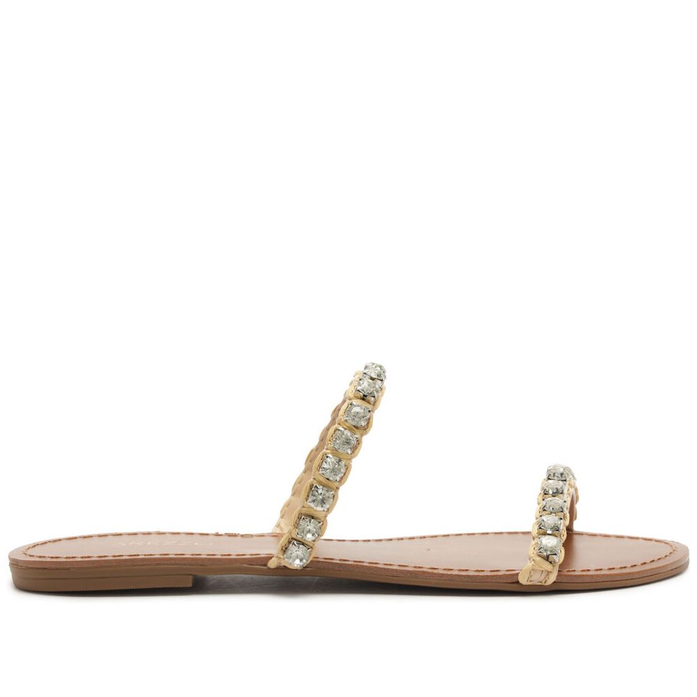 Sandália Arezzo Rasteira Natural Tiras Pedrarias Coloridas
