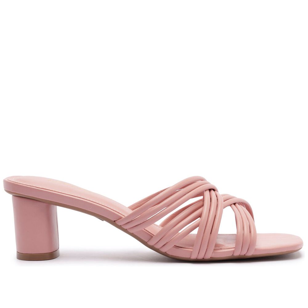 Sandália Arezzo Rosa Salto Bloco Médio Tiras Cruzadas