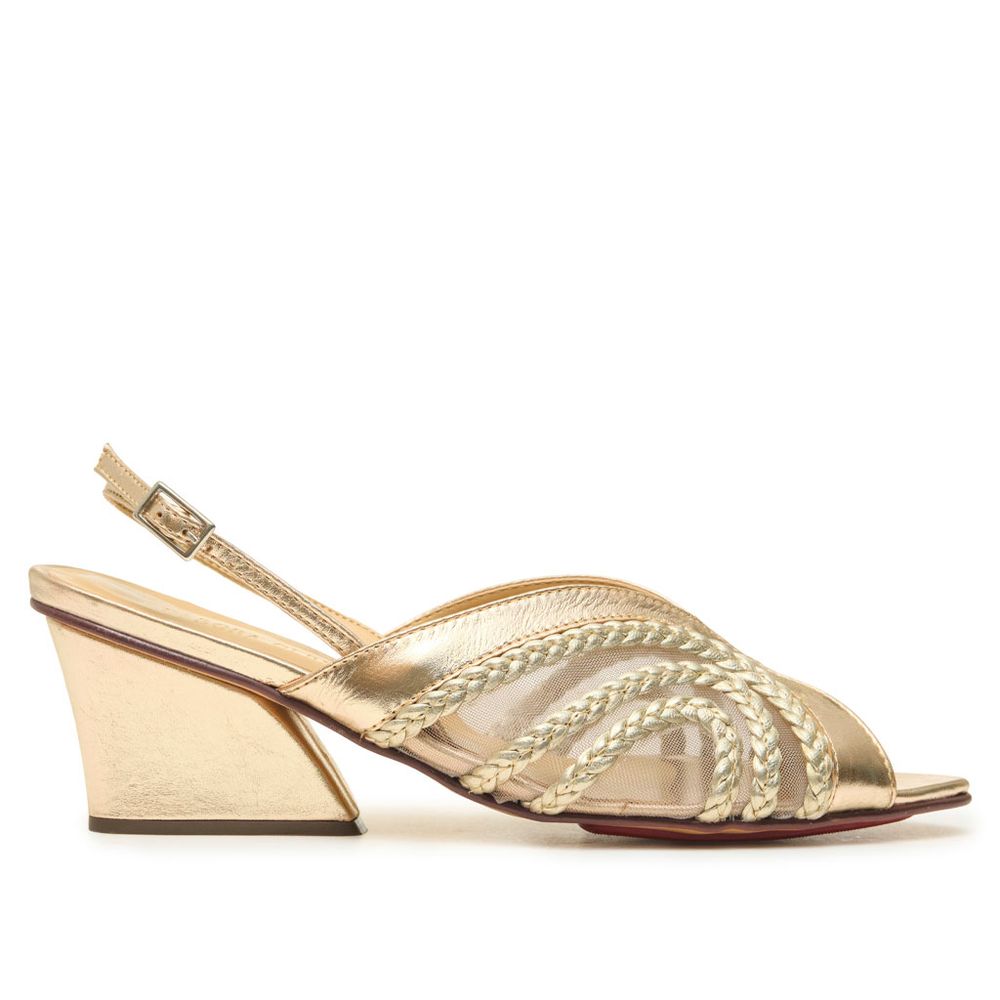 Sandália Debora Germani Salto Bloco Metal Ouro Light