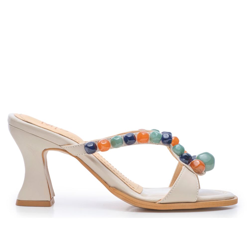 Sandália M|S Off Salto Baixo Com Pedraria Colorida