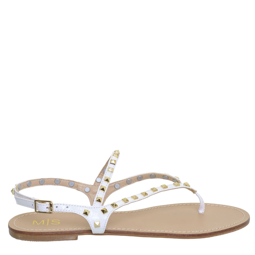 Sandália M|S Rasteira Branca em Couro Verniz