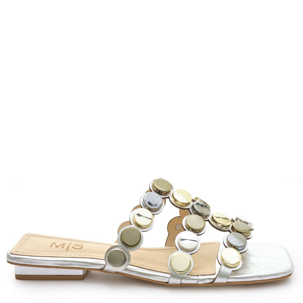 Sandália M|S Rasteira Metalizado Cristal Prata