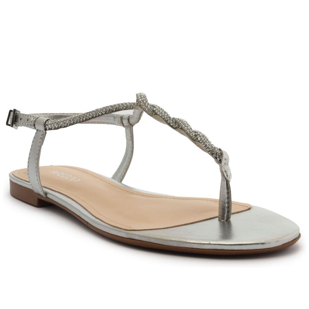 Sandália Rasteira Prateada Enfeites Arezzo