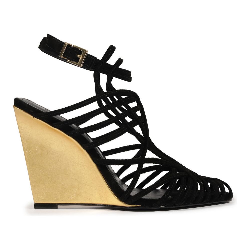 Sandália Schutz Anabela Couro Preta Camurça Entrelaçada