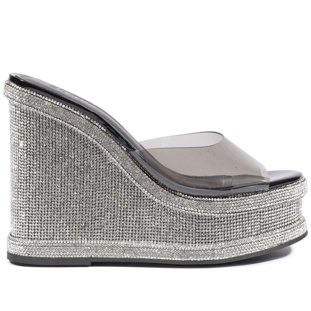 Sandália Schutz Plataforma Anabela Brilho Preta