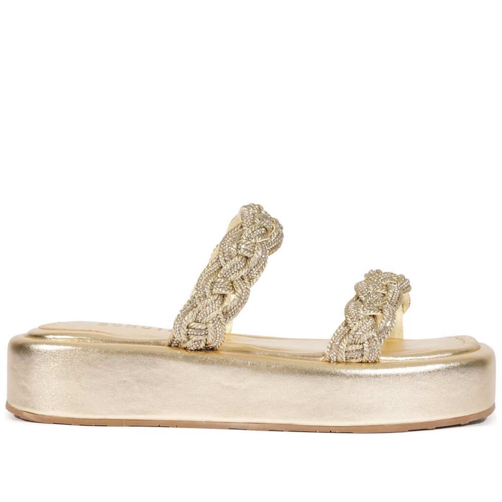 Sandália Schutz Plataforma Dourada Tiras Trançadas