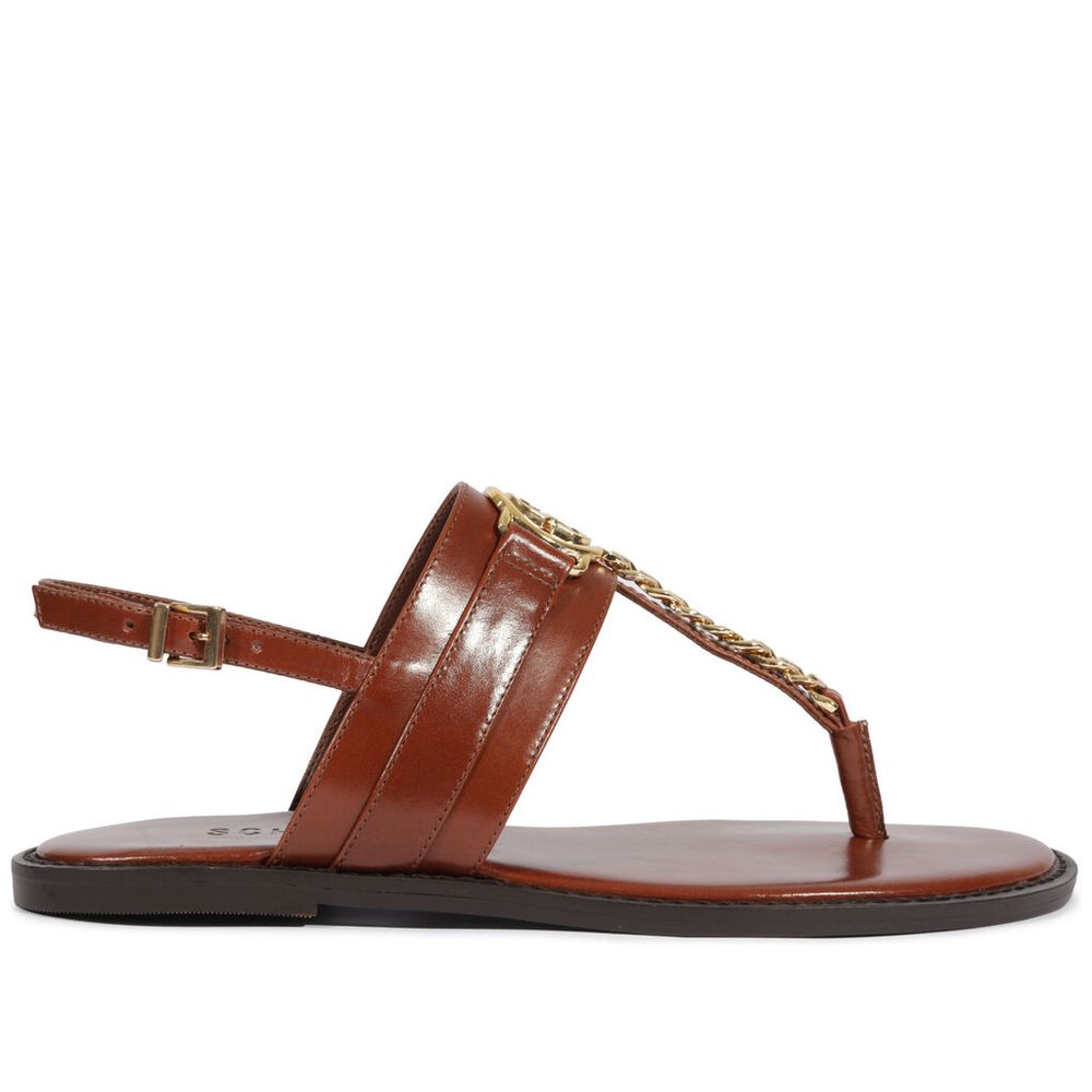 Sandália Schutz Rasteira Couro Marrom Aplicação Corrente Dourada
