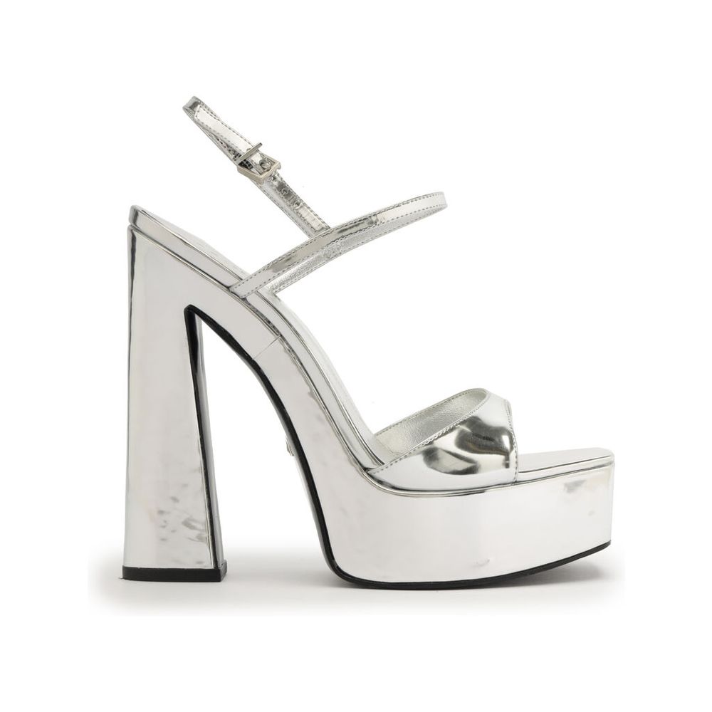 Sandália Schutz Spechio Meia Pata Salto Alto Prata