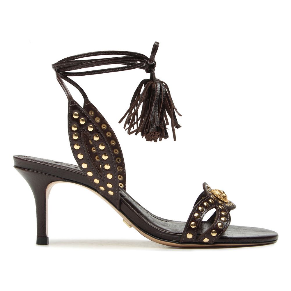 Sandália Vicenza Clark Marrom Couro Studs Metalizados