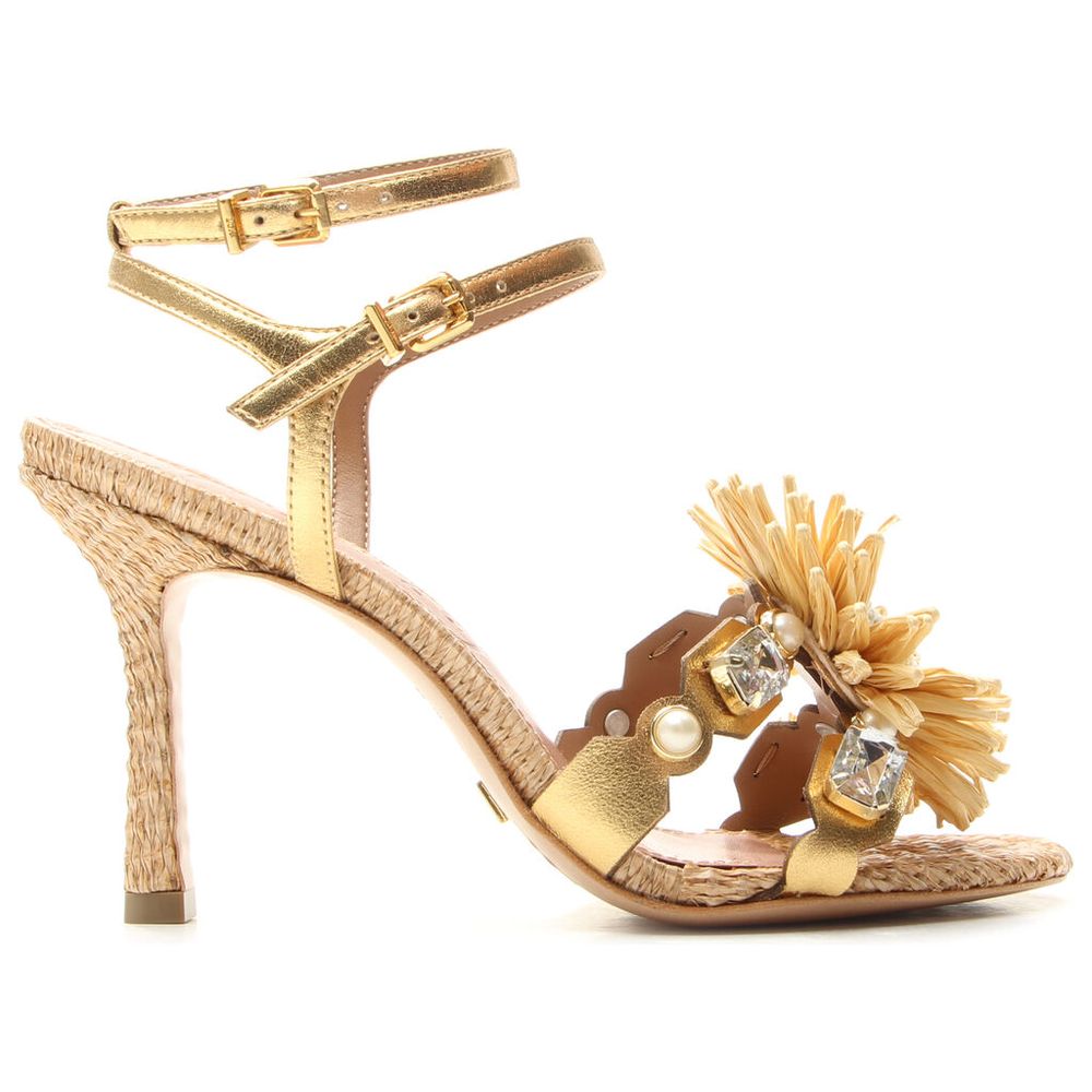 Sandália Vicenza Dourada Flores em Palha Pedrarias