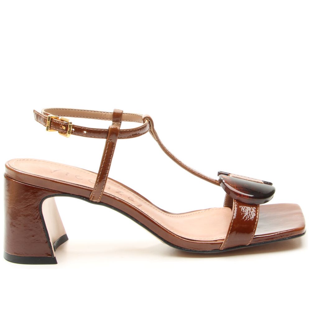 Sandália Vicenza Odessa Marrom Verniz Aplicação