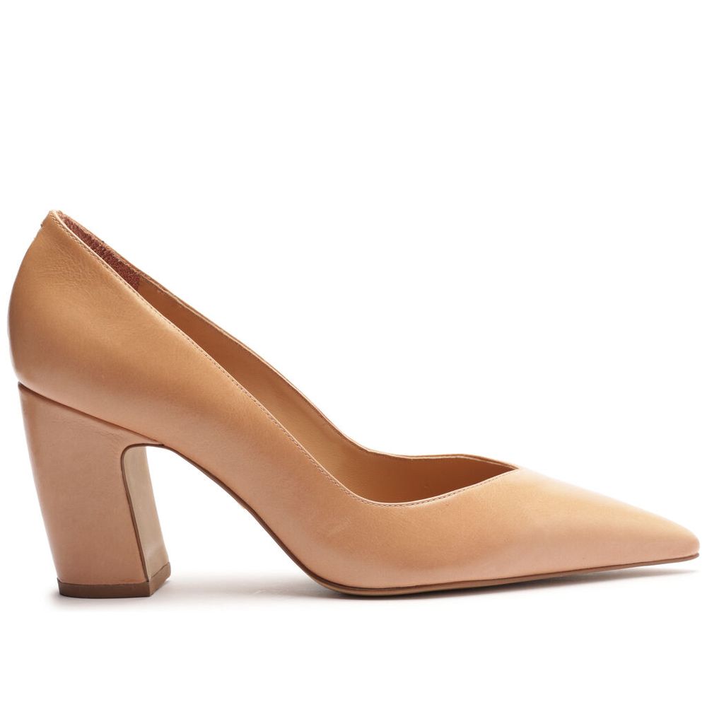 Scarpin Arezzo Couro Nude Salto Bloco Elegante