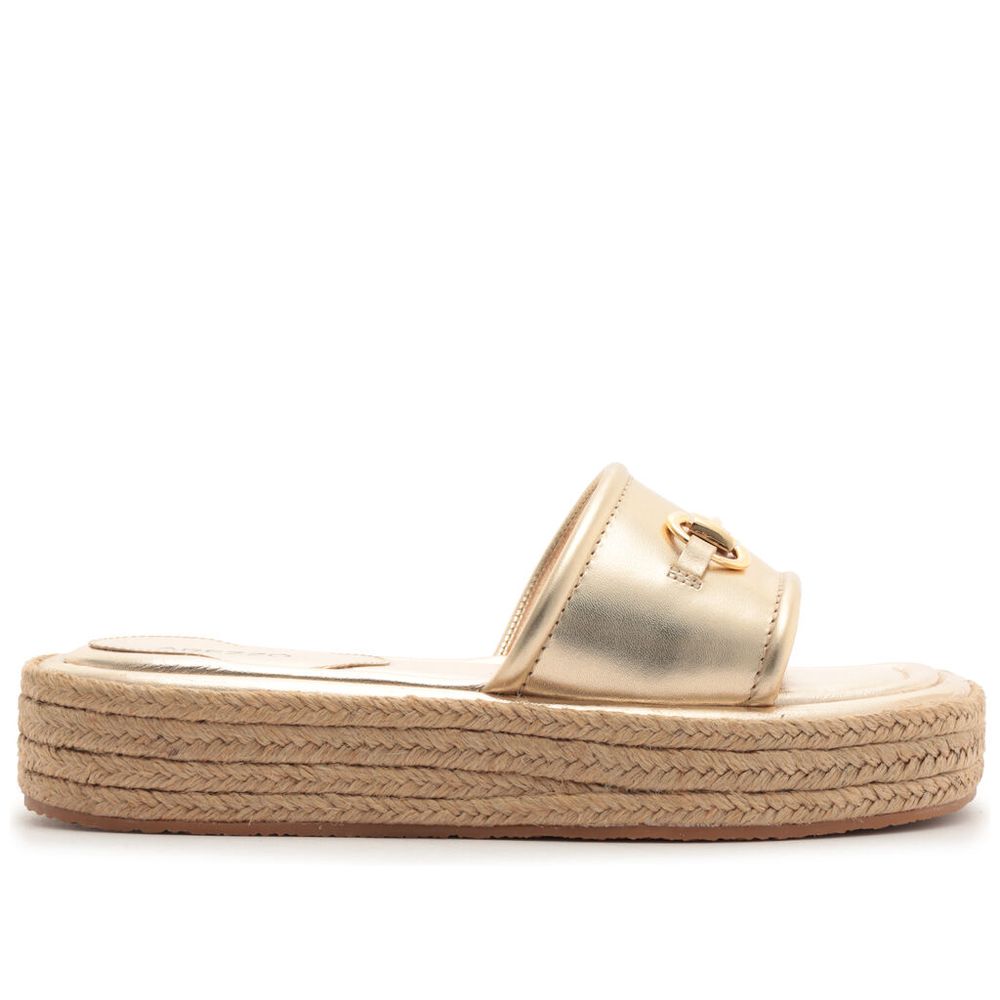 Tamanco Arezzo Dourado Couro Flatform Corda Bridão