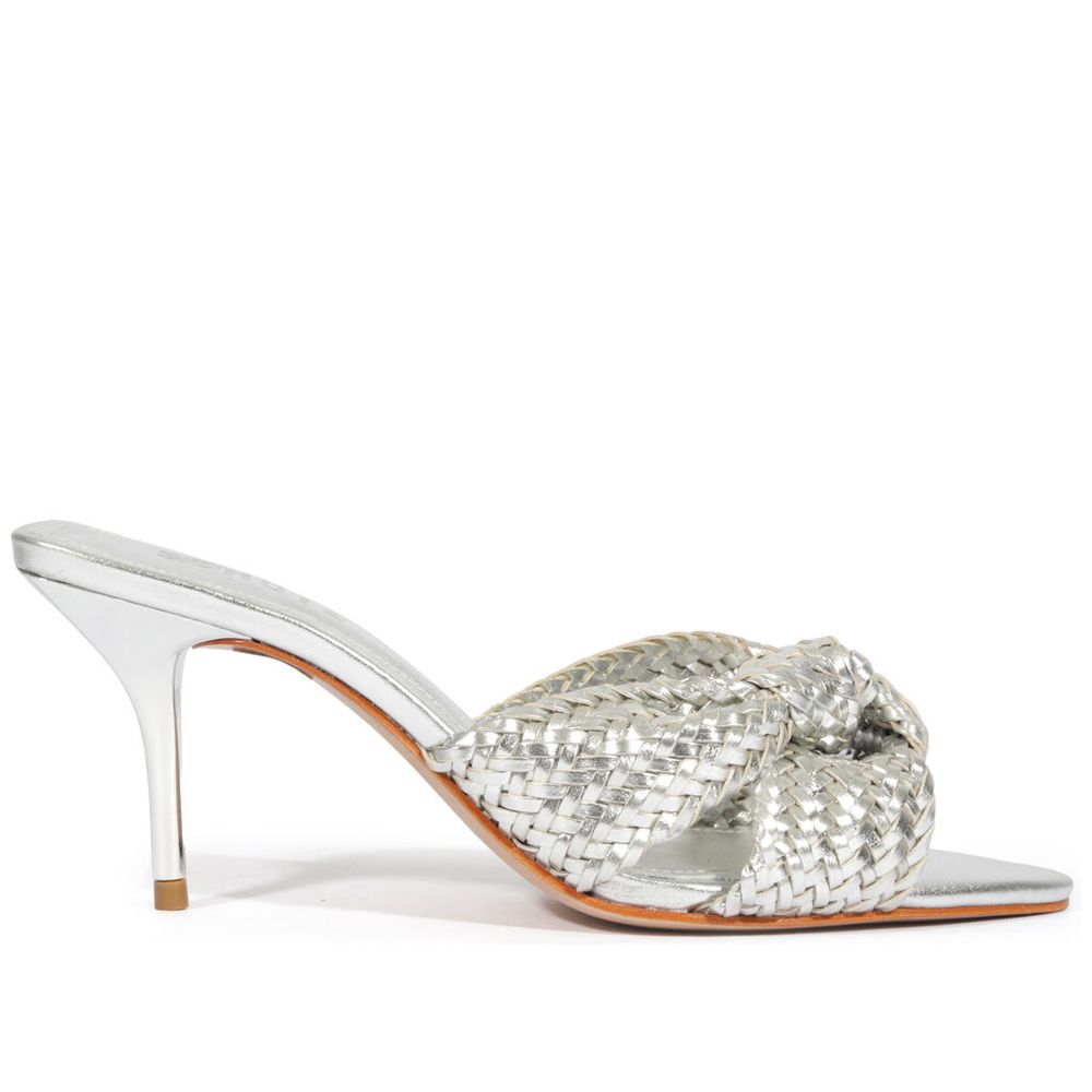 Tamanco Schutz Trançado Couro Prata Salto Médio